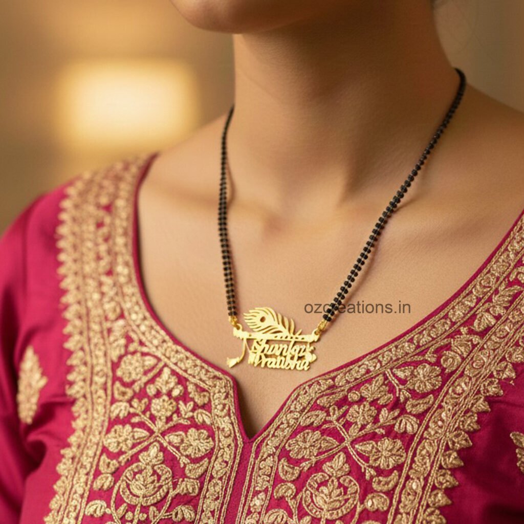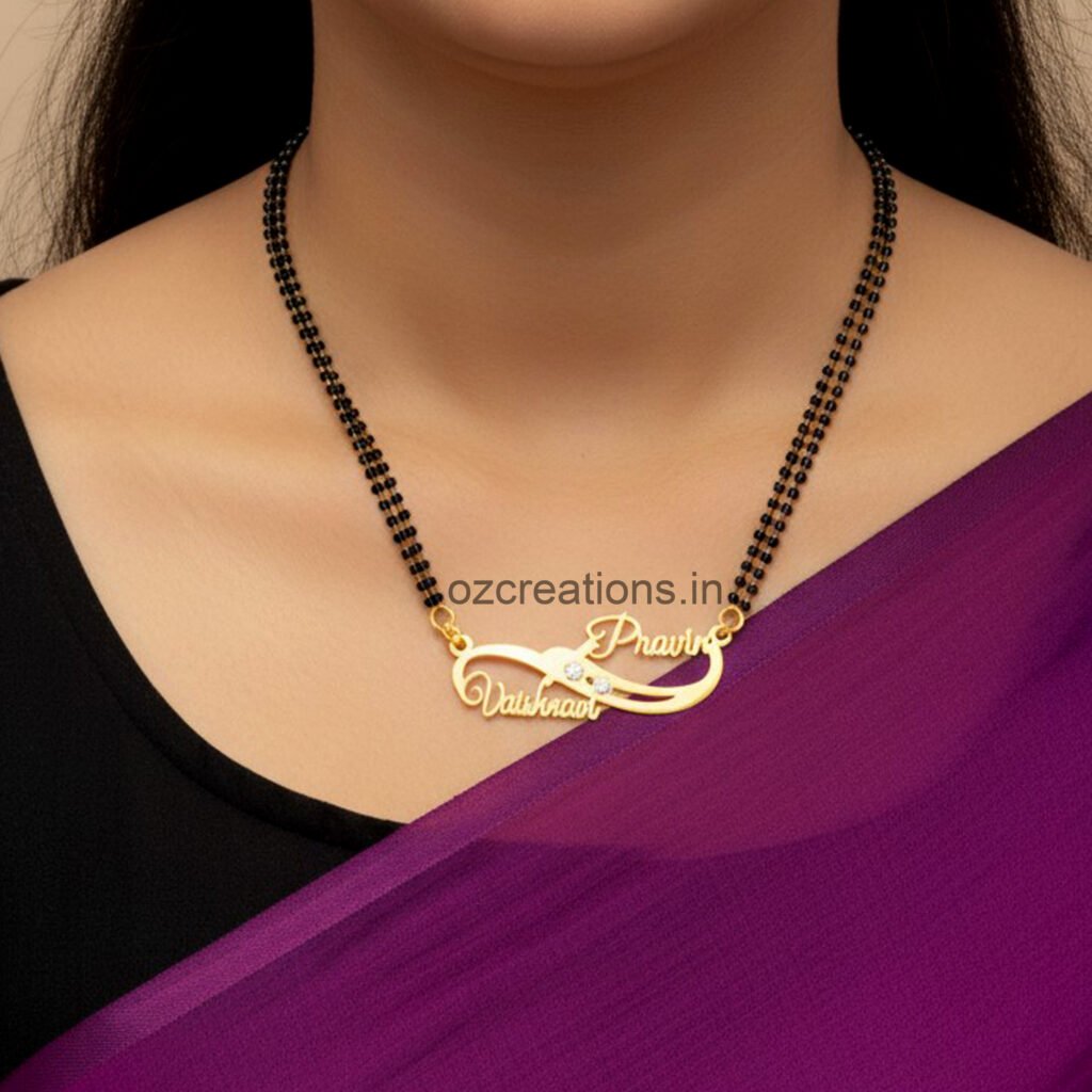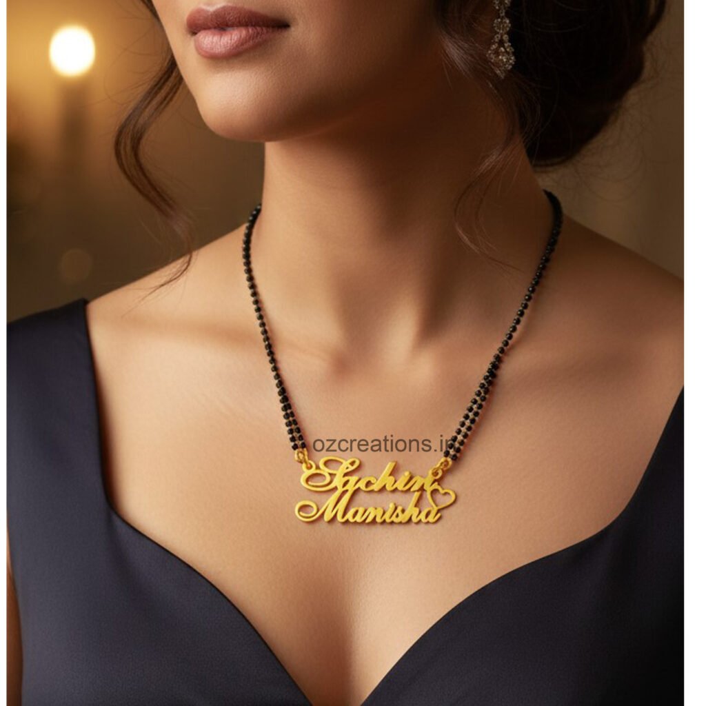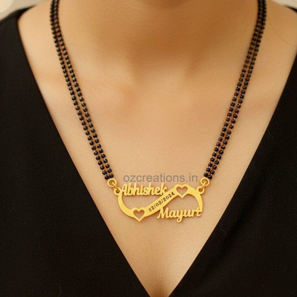 Celebrate your special bond with our Customized Name Necklace — a timeless piece crafted just for you. Beautifully designed with your chosen names, this elegant locket adds a personal touch to every outfit and makes the perfect gift for loved ones. Available Finishes: Gold Design; Style Couple Heart Design Material: High-quality brass Colour Golden Size: 18-inch Chain (Mangalsutra option also available) Languages Supported: English, Marathi, Urdu, Arabic, etc Packaging: Premium black gift box included Each piece is hand-crafted with care, ensuring smooth edges, perfect detailing, and a luxurious shine. Designed to last, this customised locket is ideal for anniversaries, birthdays, weddings, engagements, or simply expressing love in a unique way. 🛠 Crafting & Delivery Time: 10-15 working days Wear your story close to your heart. A keepsake that is truly one of a kind.