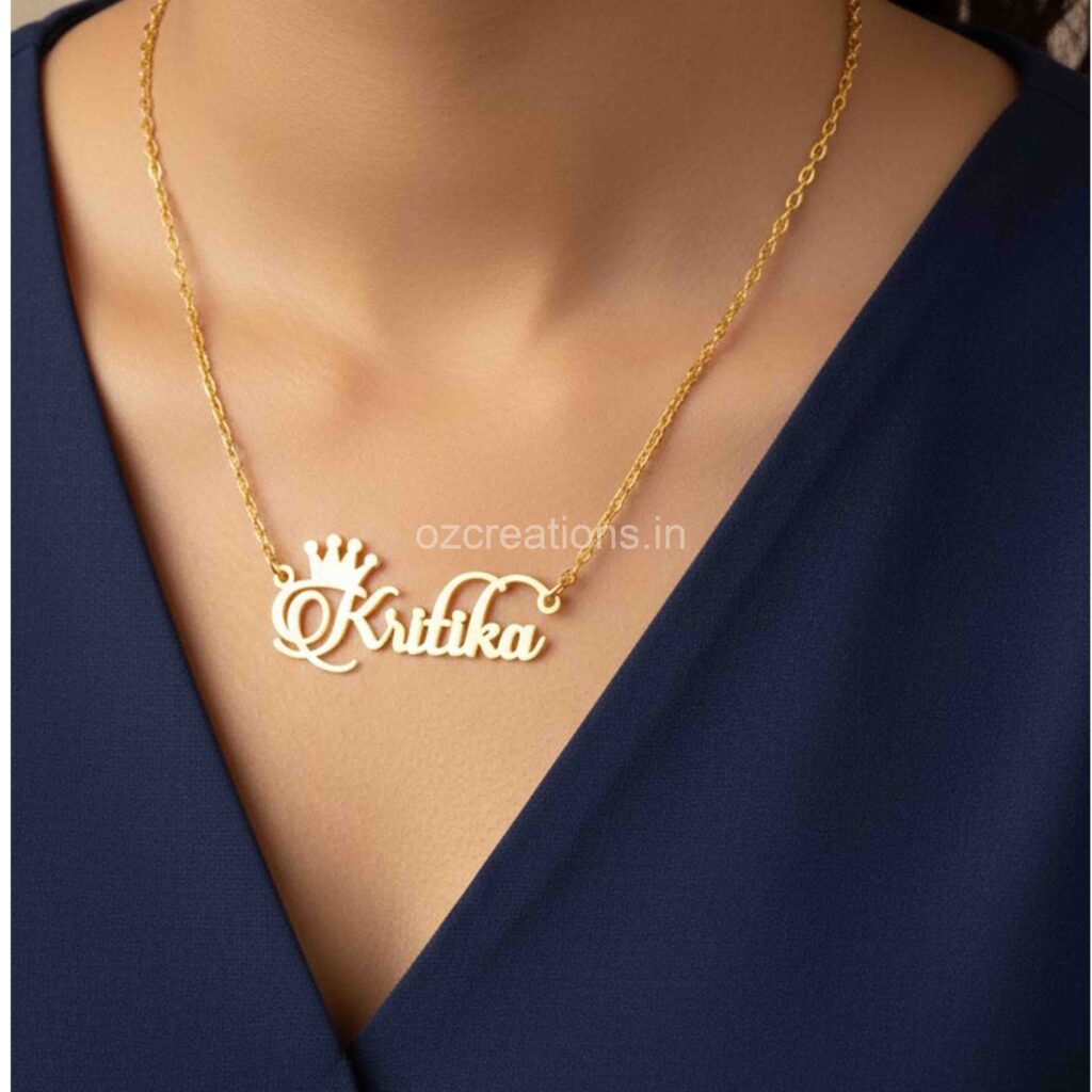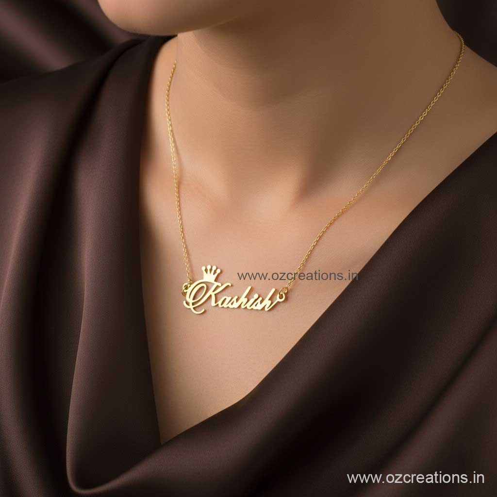 Celebrate your special bond with our Customized Name Necklace — a timeless piece crafted just for you. Beautifully designed with your chosen names, this elegant locket adds a personal touch to every outfit and makes the perfect gift for loved ones. Available Finishes: Gold Plated, Rose Gold, Silver Design; Cr0wn Stylish name Material: High-quality brass Size: 18-inch chain (Mangalsutra option also available) Languages Supported: English, Marathi, Urdu, Arabic, etc Packaging: Premium black gift box included Each piece is hand-crafted with care, ensuring smooth edges, perfect detailing, and a luxurious shine. Designed to last, this customised locket is ideal for anniversaries, birthdays, weddings, engagements, or simply expressing love in a unique way. 🛠 Crafting & Delivery Time: 10-15 working days Wear your story close to your heart. A keepsake that is truly one of a kind.