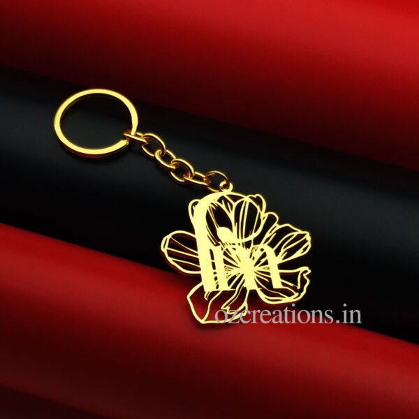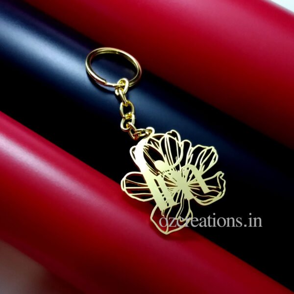 Customized Brass keychain flower with 2 letter name Jewelry Gift for Mother’s Day, Family and Friends – Couple Keychain